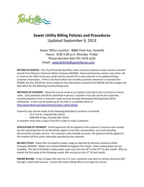 Sewer Utility Billing Policies And Procedures City Of Parkville